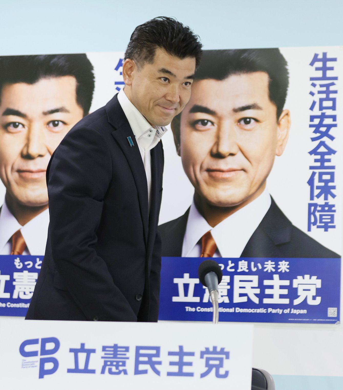 開票センターに入る立憲民主党の泉健太代表=2022年7月10日、東京都千代田区(写真=時事通信フォト)