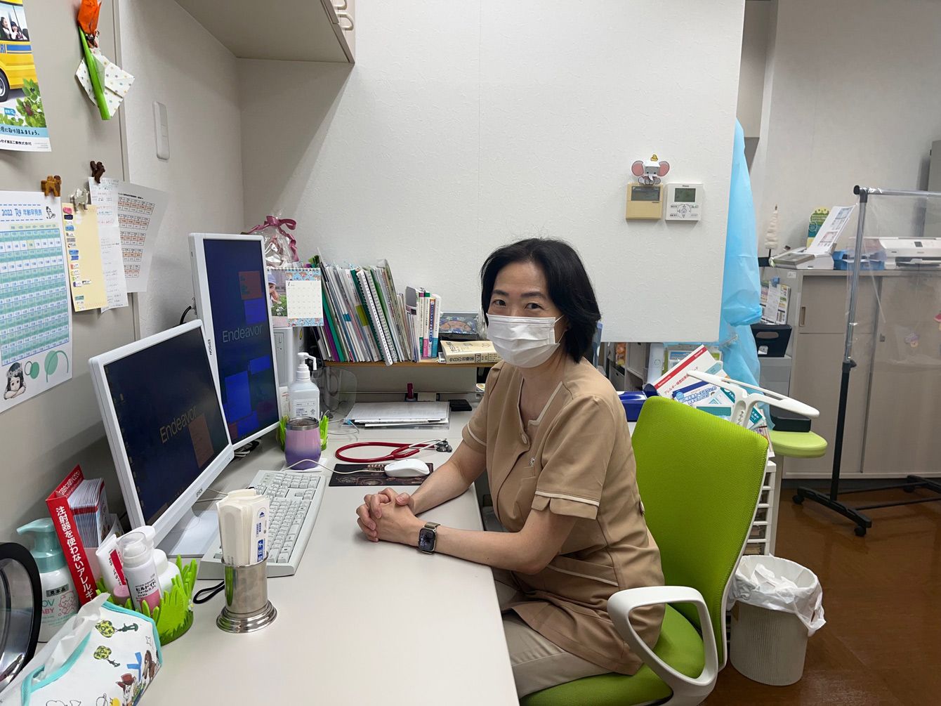 クリニックで通常の診察にのぞむ森戸やすみさん。