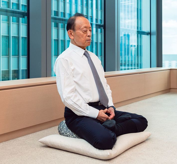 山田会長は毎朝6時に起床した後、25分間の坐禅を2回行い、就寝前にも座っている。また、仕事の合間にも時間があると、自分の部屋の中でこのように座ることもある。