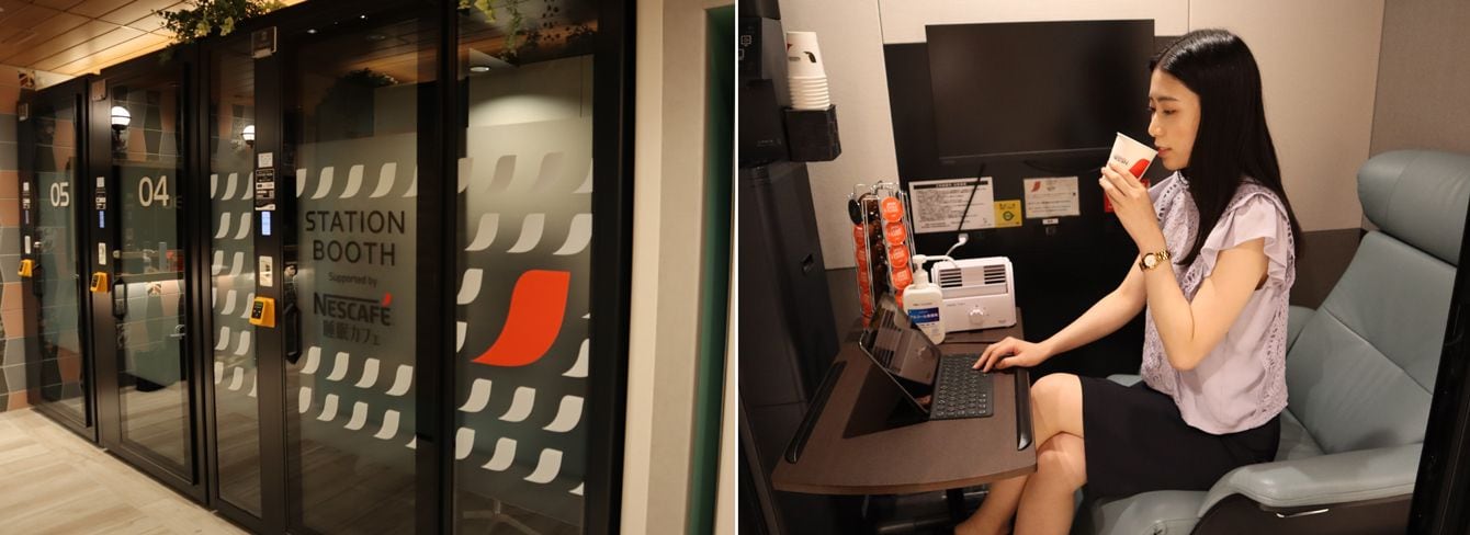 大宮駅の駅構内にオープンした「STATION BOOTH supported by ネスカフェ 睡眠カフェ」