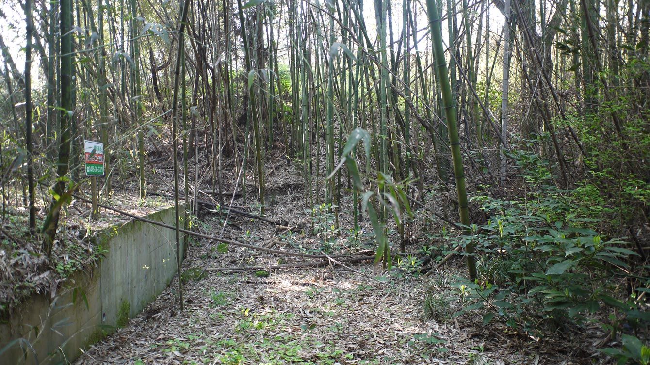 不法投棄の残土で埋もれた私道。すでに竹が生えはじめているが、地中には今なお数区画の個人の所有地が埋もれている。(千葉県東金市滝沢)
