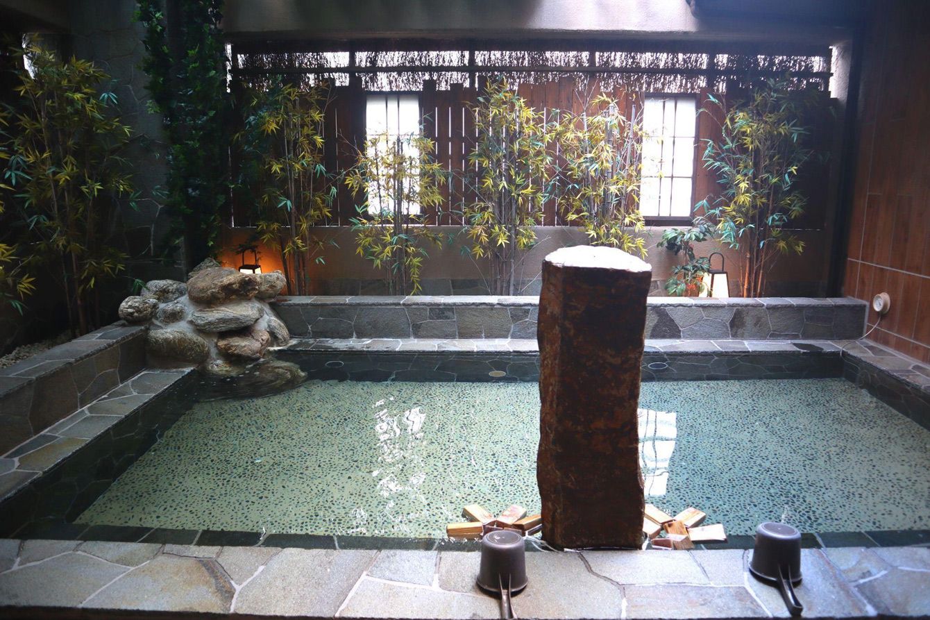 露天風呂は風鈴が鳴り響き、癒やしを自然と感じられるような工夫がされている。