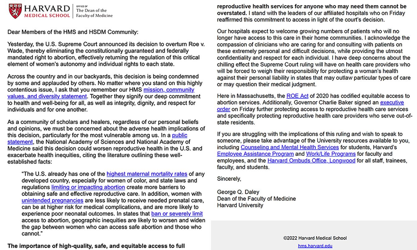 ハーバード大学医学部が病院関係者に送った文書。