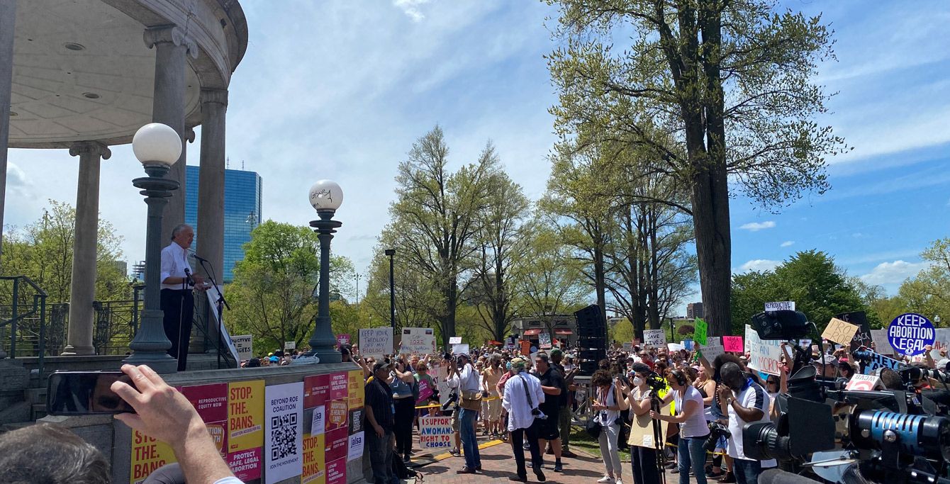 2022年5月14日、最高裁のリークを受けてボストンコモンで開催されたプランド・ペアレンタルフッド・アクションファンド主催の抗議集会。演説するのはエド・マーキー上院議員。