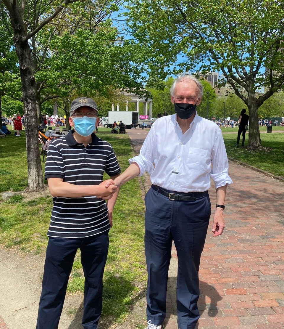 エド・マーキー上院議員(右)と並ぶ筆者。同氏は民主党急進派と知られ、中絶容認を掲げ、事実上女性の権利を「縮小」する最高裁判決に強く抗議。筆者はマーキー上院議員と意見を交換する機会があった。
