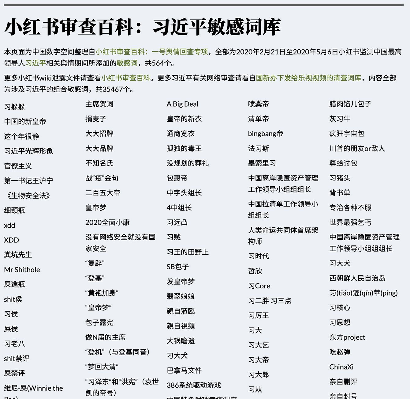 中国の人気SNS『小紅書』のタブーワード一覧。「皇帝梦」(皇帝の夢)から「SB包子」(アホ肉まん)までお好きな単語をどうぞ。