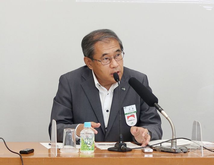 記者会見するJR東日本の深沢祐二社長=2022年9月6日、東京都渋谷区