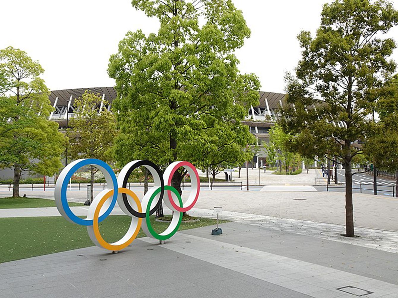 日本オリンピックミュージアム前に設置されたオリンピックシンボル(写真=CC-BY-4.0/
