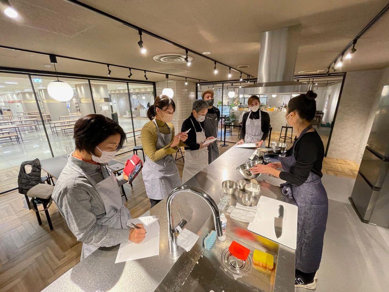 食品売り場内の料理教室の様子。住宅設備をオンライン販売するサンワカンパニーがショールームとして場所を提供している