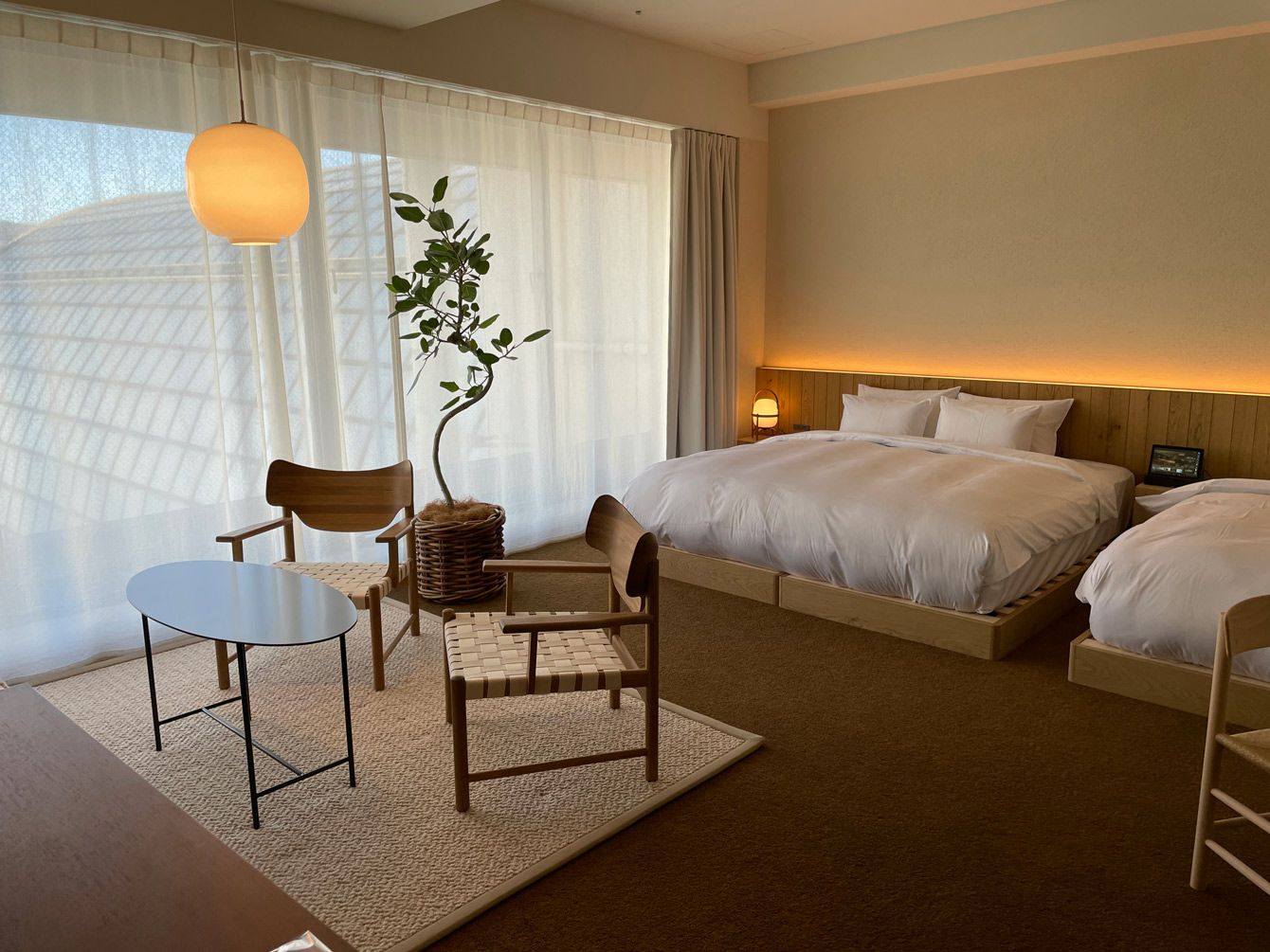 フィンランド・デザイン界の第一人者として知られている愛媛県砥部町出身の陶芸家・石本藤雄によるアートで飾られたHOTEL LEPO CHAHARUの客室内