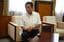 2012年の「しまなみ海道サイクリング」参加中に愛媛県庁に立ち寄り、あいさつするジャイアント会長(当時)の劉金標氏。右隣は中村知事