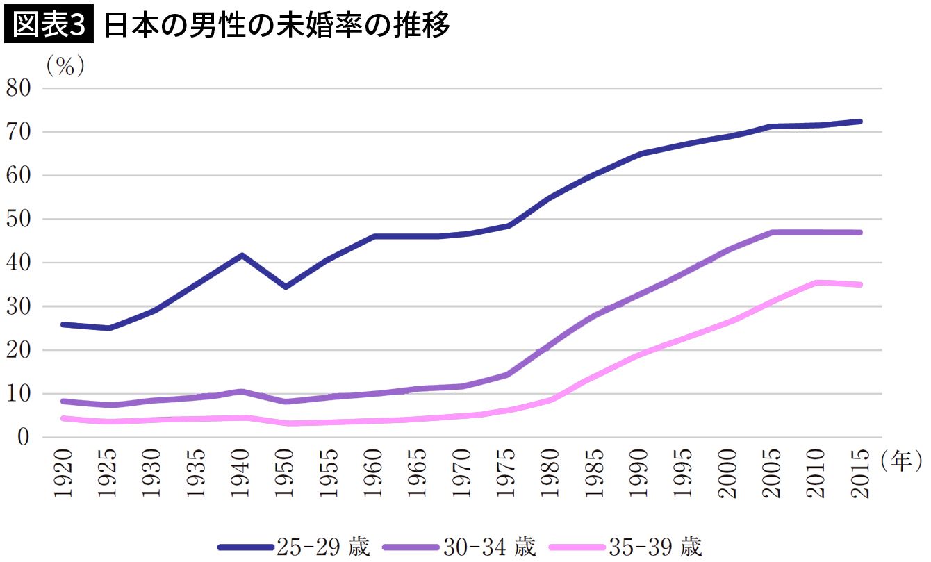 日本の男性の未婚率の推移 出所=『
