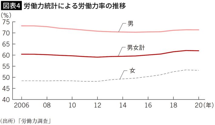 労働力統計による労働力率の推移 出所=『