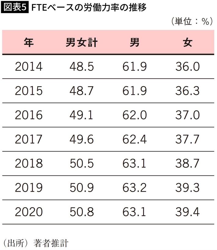 FTEベースの労働力率の推移 出所=『