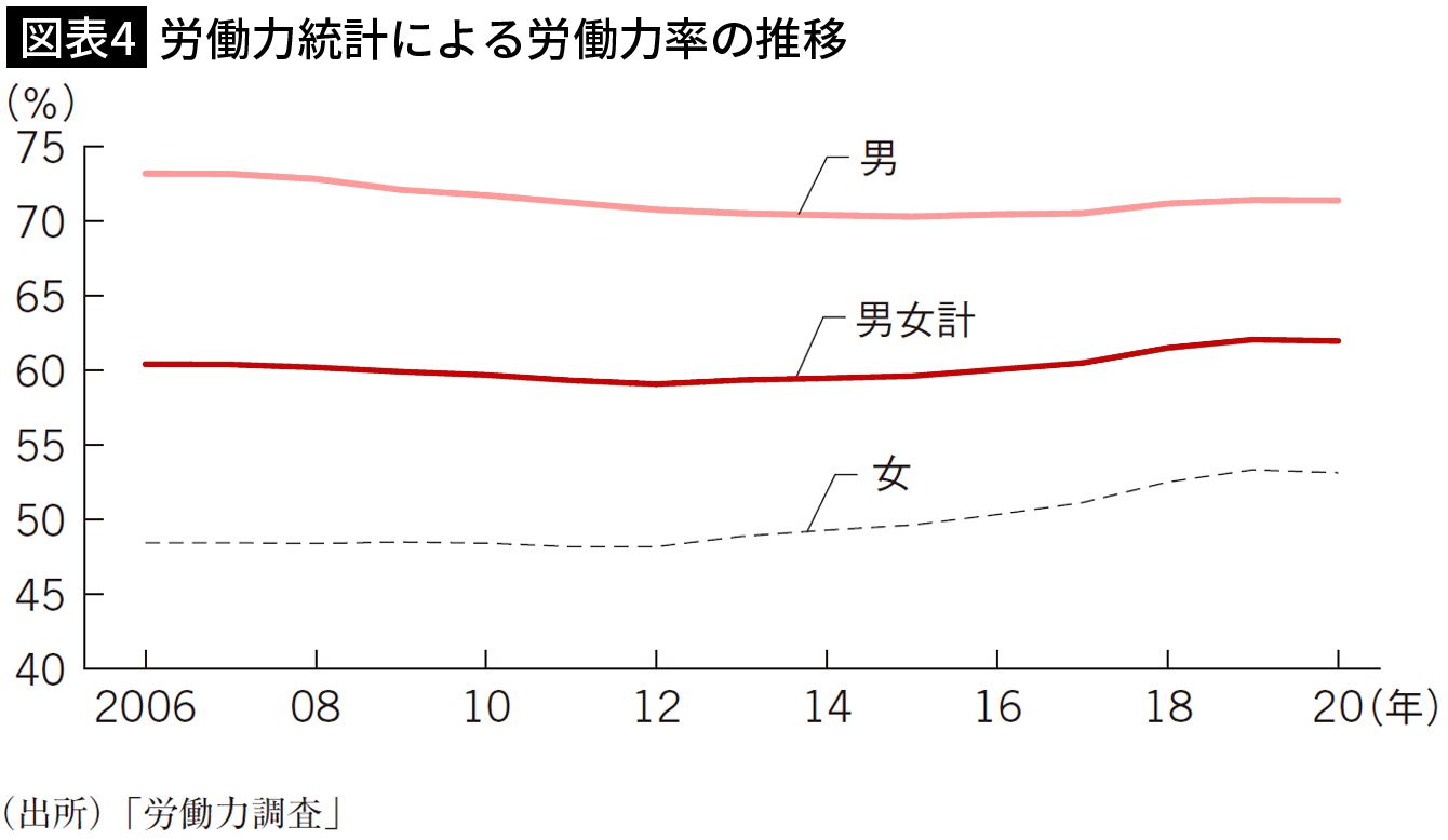 労働力統計による労働力率の推移 出所=『