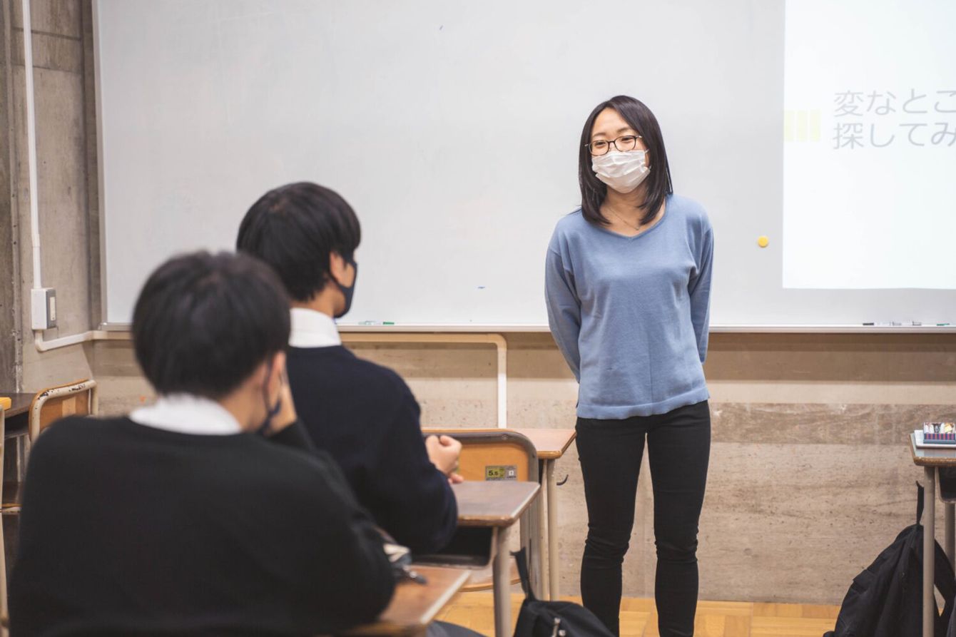 土佐塾中学・高等学校で授業を行う安藤さん。