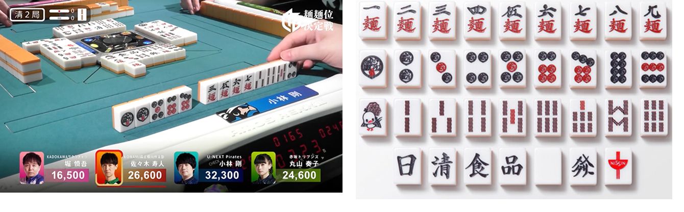 日清食品が協賛した麺麺位決定戦。日清食品の商品にちなんで牌が「どん兵衛」「麺」などとなっている。