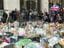 バッキンガム宮殿前に設置された各国TVのライブ仮設スタジオ