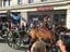 弔砲(ちょうほう)を撃つ大砲が馬に引かれて繁華街を走る