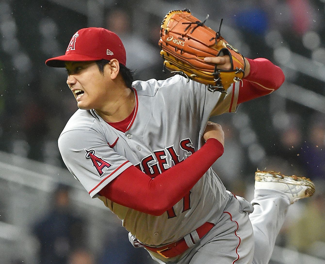 ツインズ戦に先発し、力投するエンゼルスの大谷翔平=2022年9月23日、アメリカ・ミネアポリス