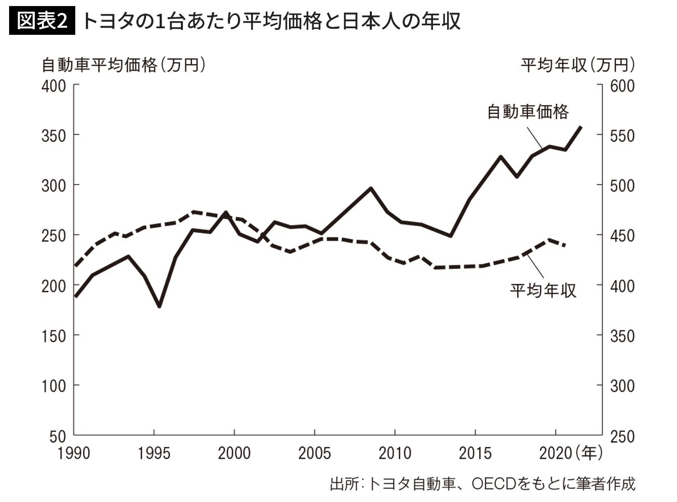 自動車価格が上昇する一方、日本人の年収は全く上がっていない(出所=『