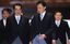 2009年9月16日、東京の皇居で行われた新閣僚と天皇との会談の後、副総理兼国家戦略担当大臣の菅直人(左)と話す新首相の鳩山由紀夫(当時)