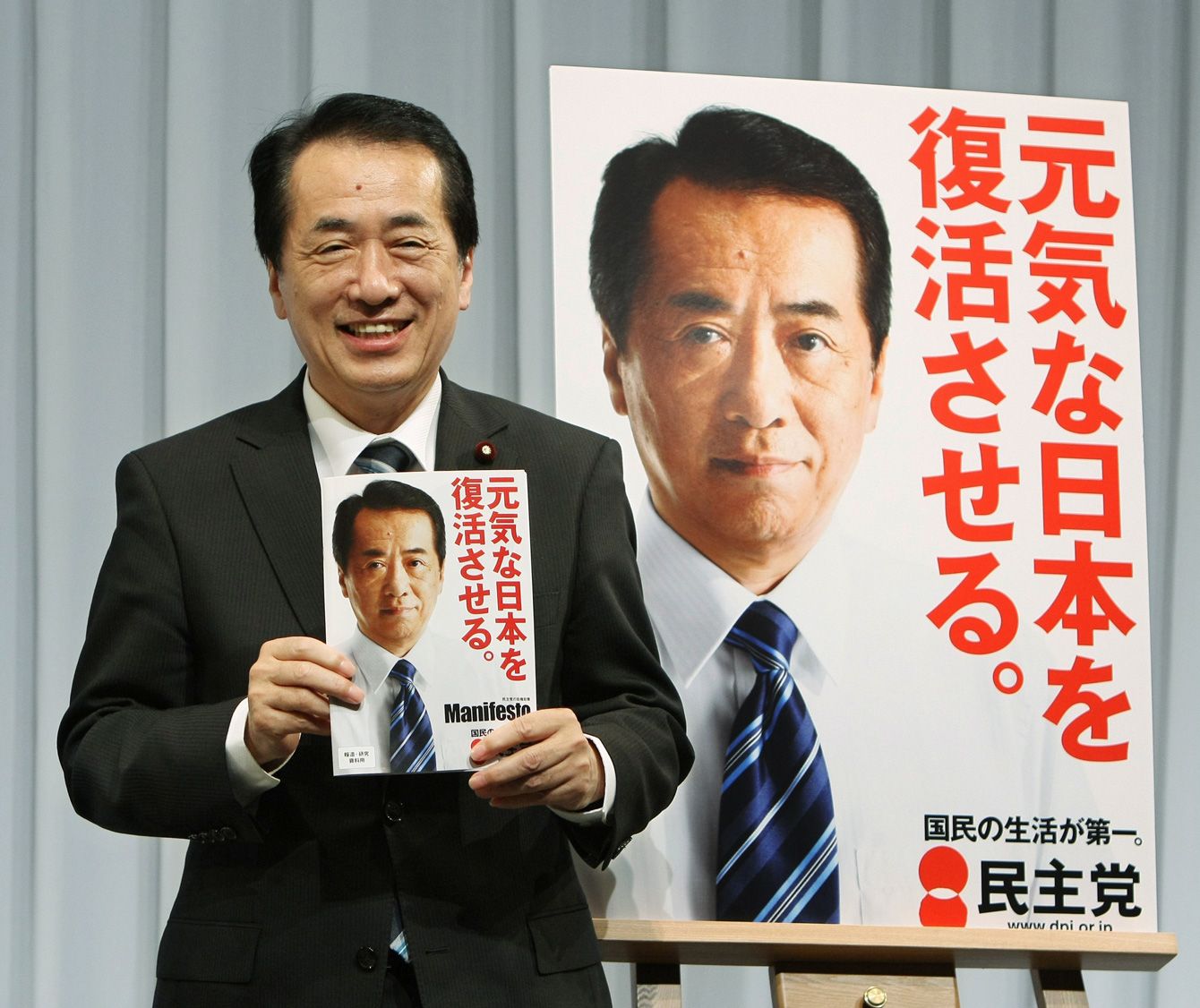 2010年6月17日、民主党の参院選マニフェスト(政権公約)を発表する菅直人首相(当時・東京・港区)