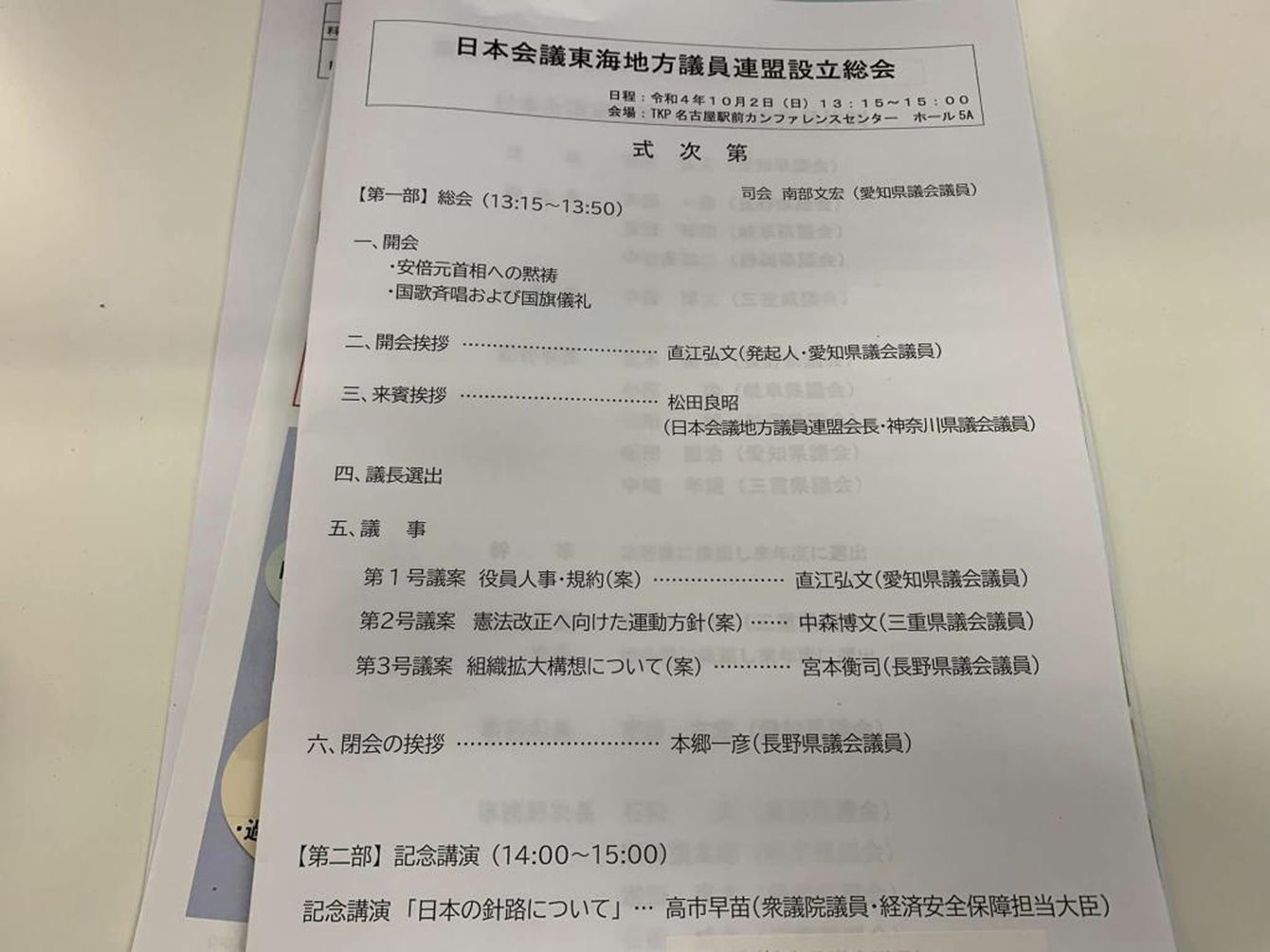 総会の式次第。名張市議Facebookより
