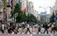 2022年9月8日、新宿駅周辺の横断歩道を渡る人々