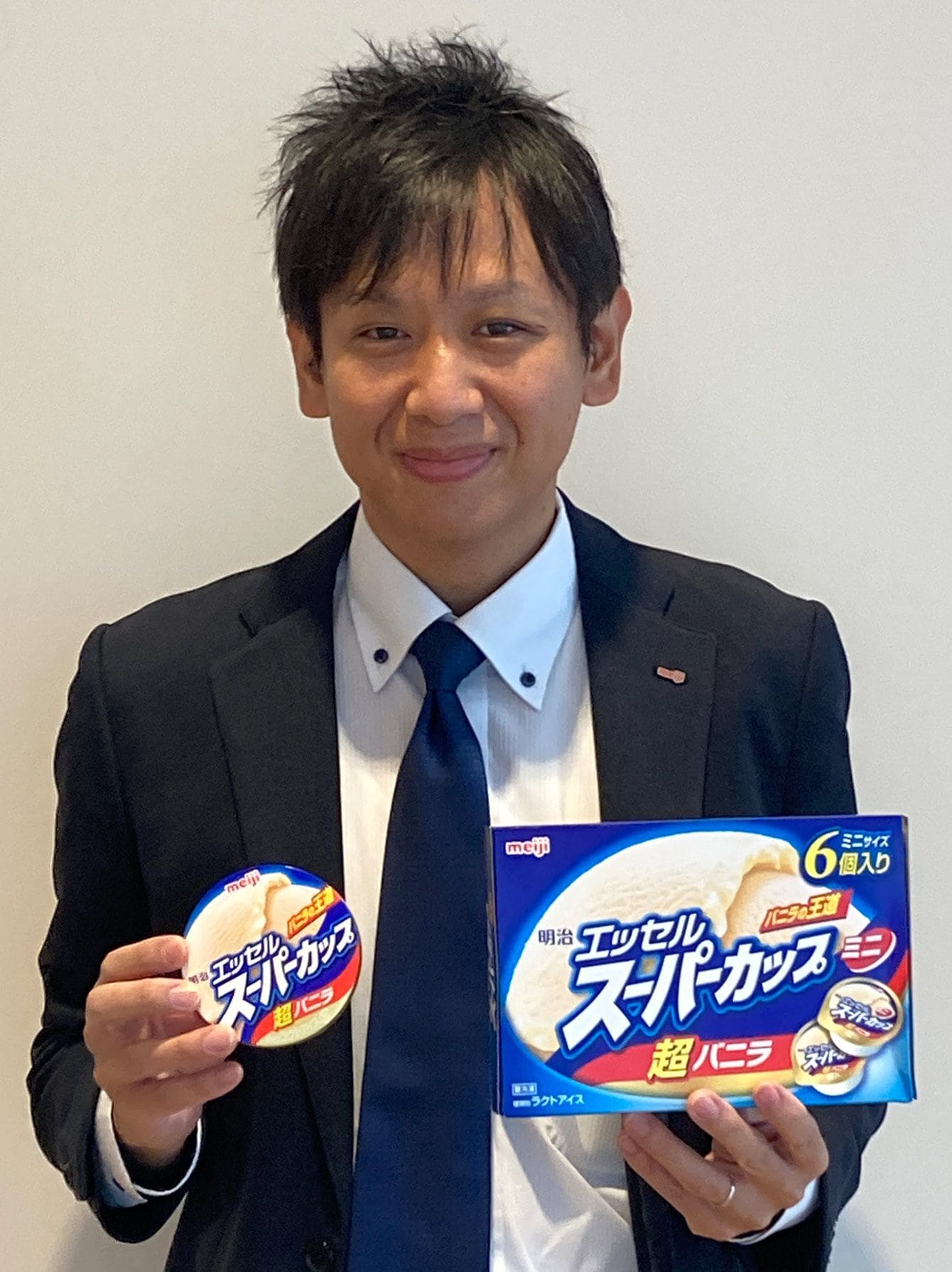 「エッセルスーパーカップ」を担当する明治の吉岡征史さん(写真提供=明治)