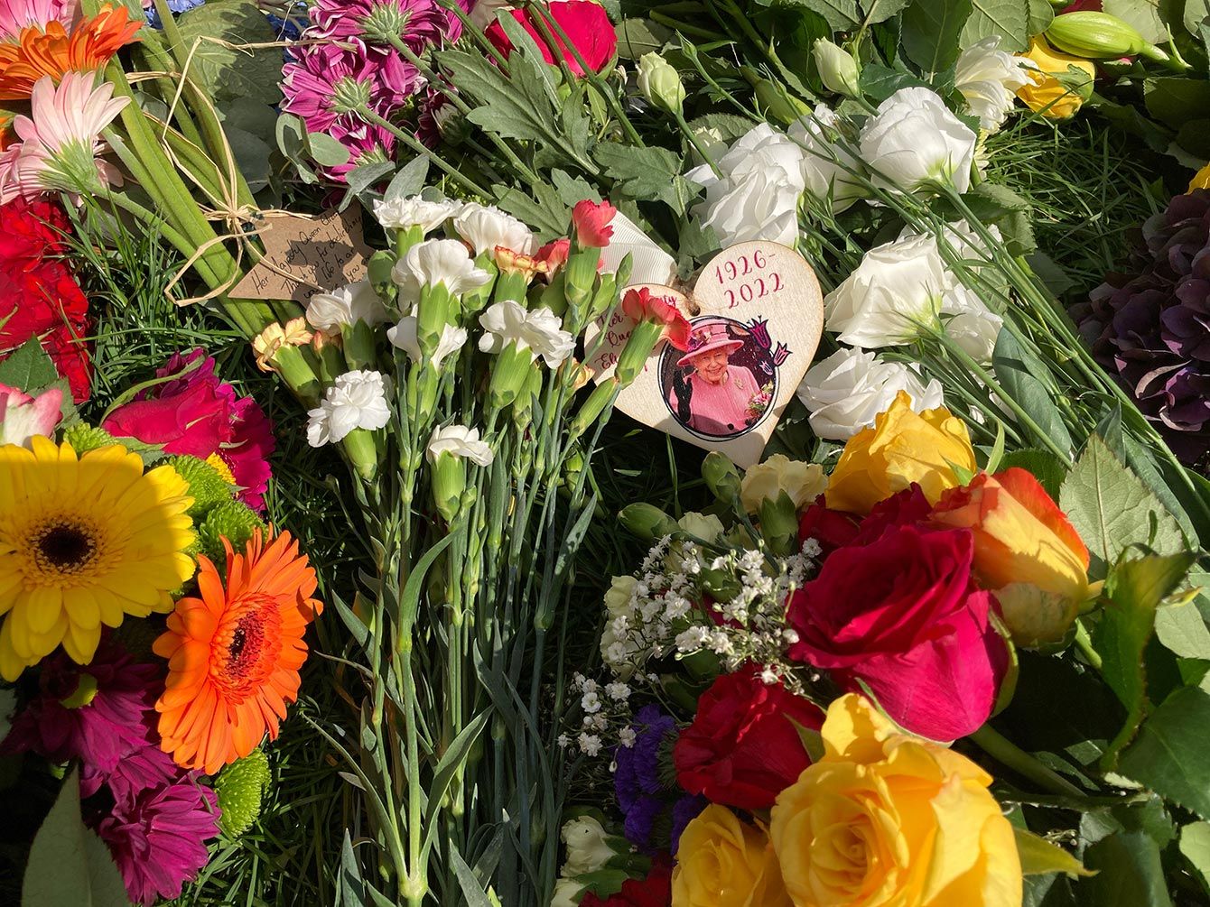花束に添えられた女王の写真