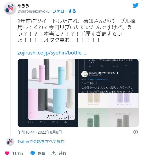ツイッター担当者はいないけれど…象印が好感度を爆上がりさせた「2年越しのリプライ」という神対応