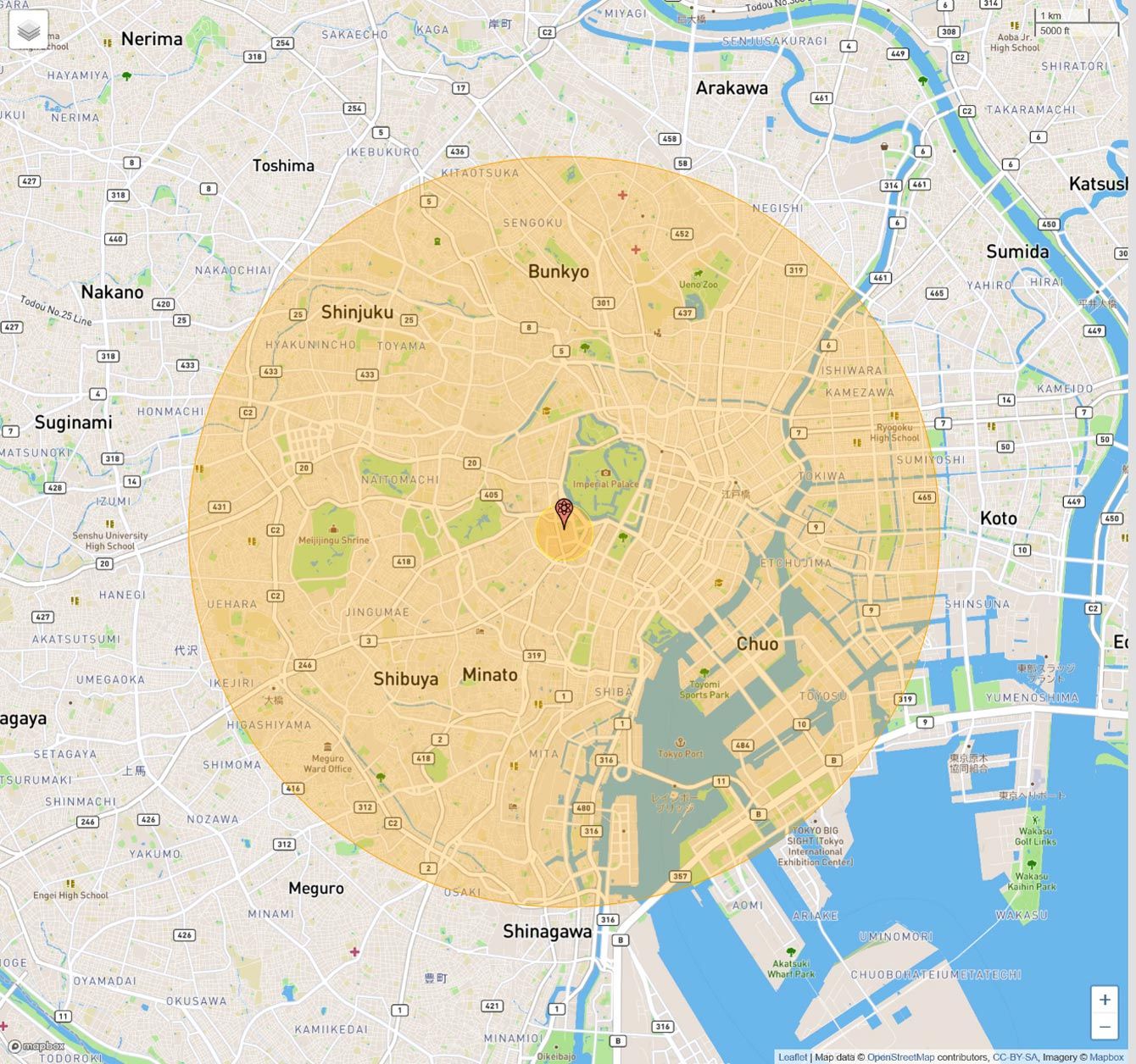 核兵器が東京で炸裂した場合のシミュレーションマップ(