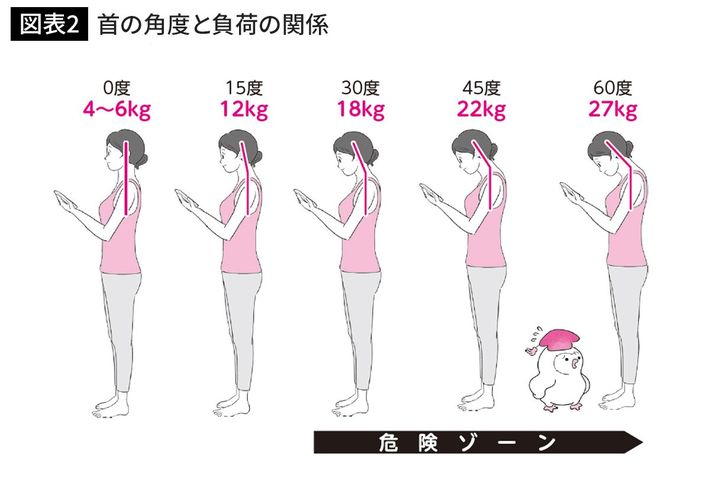 首の角度と負荷の関係