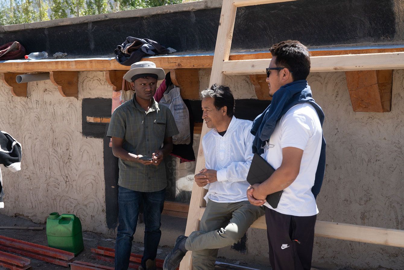 新しい建物を作る子どもたちの作業を見守るソナムさん。
