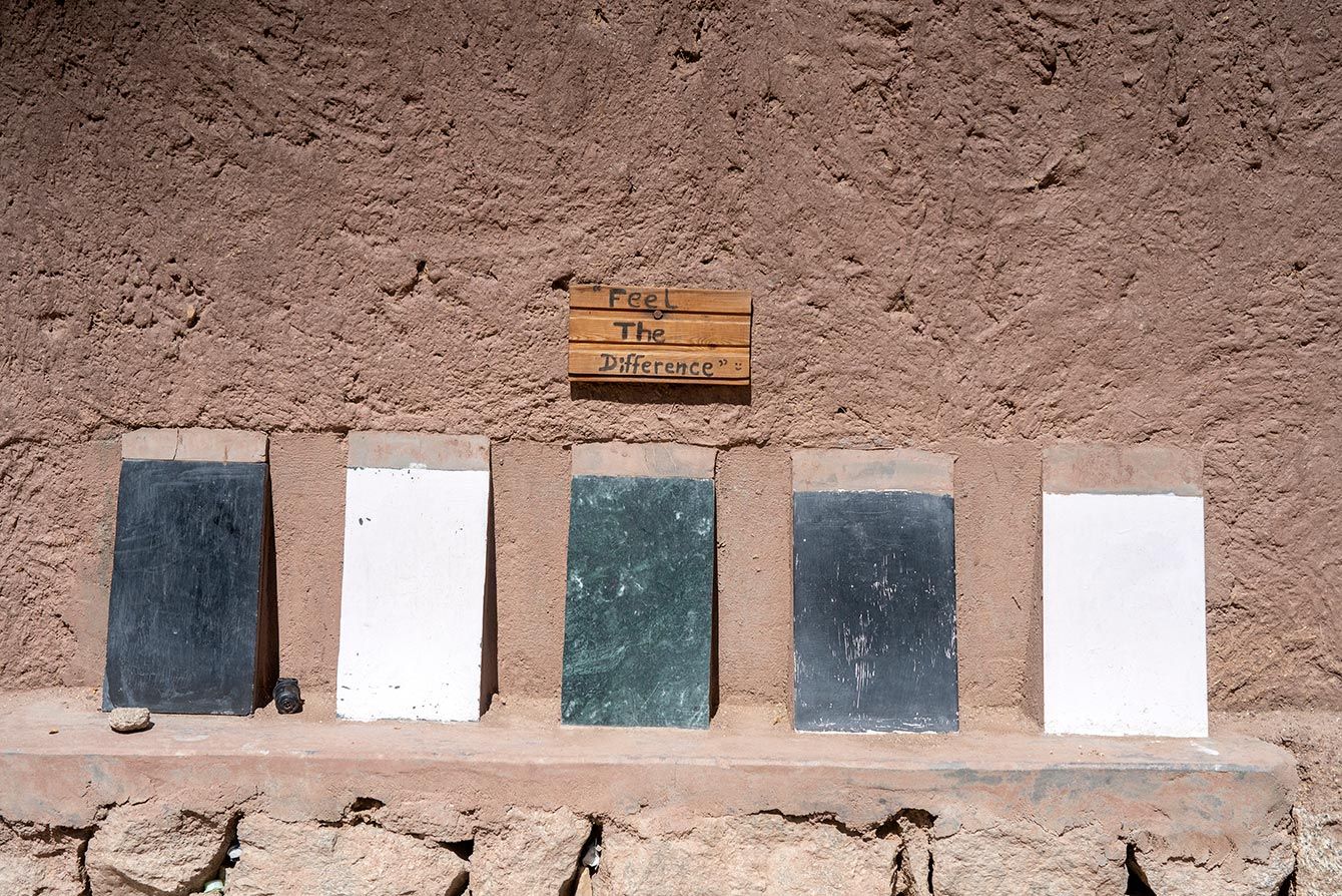 さまざまな塗料と素材を日光に当て、「(蓄熱効果の)
