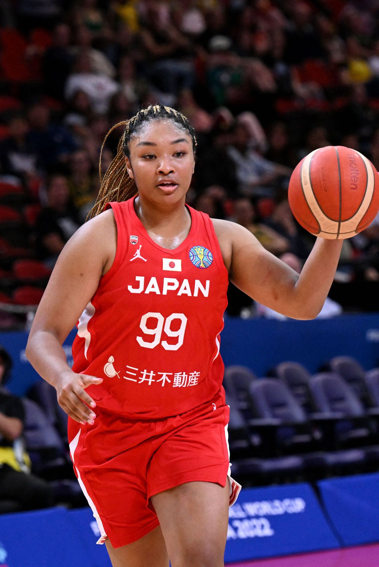 2022年9月27日、シドニーで行われた女子バスケットボールワールドカップ・グループBの最終日、オーストラリア対日本戦で、日本のオコエ桃仁花(富士通レッドウェーブ・当時)がドライブ