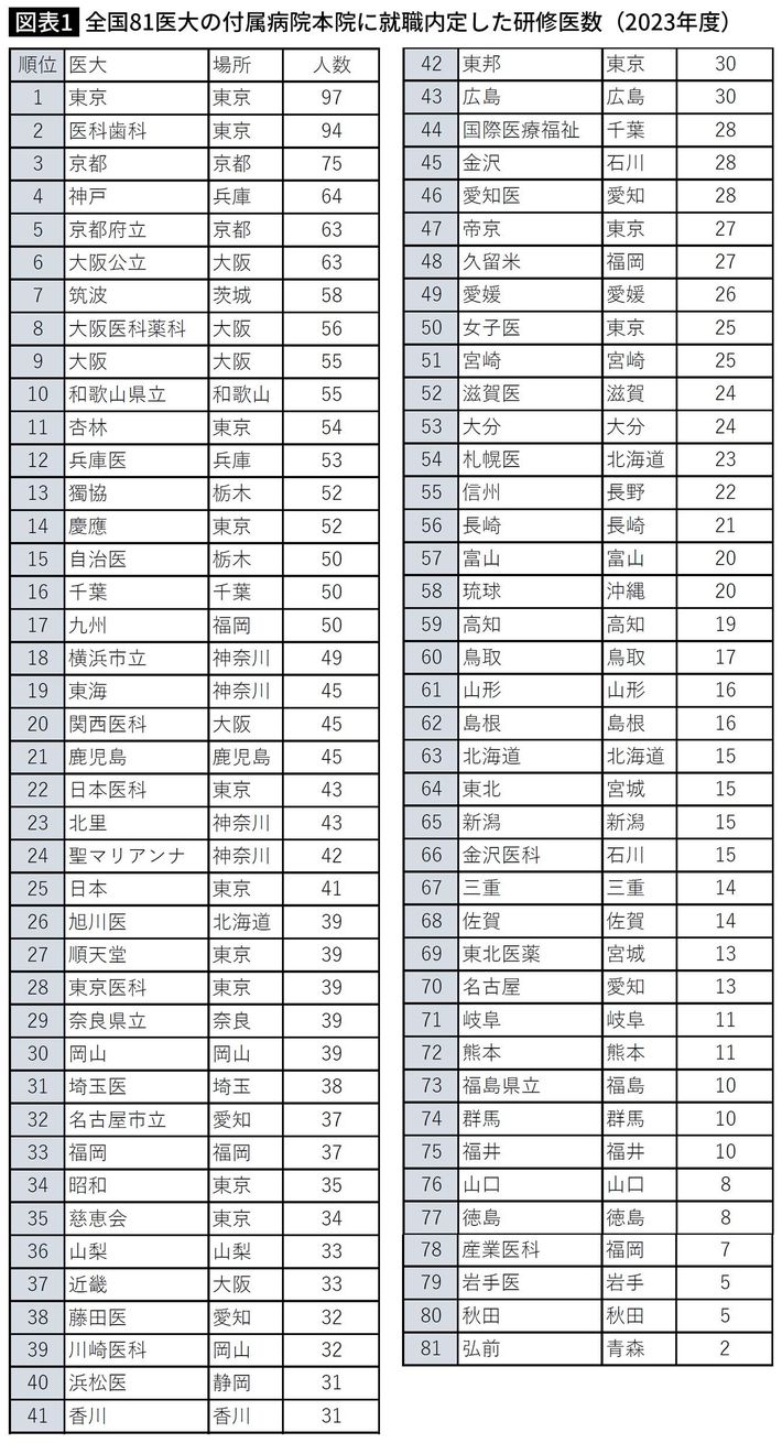 」より著者改変(防衛医大は除外)