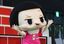 東京都千代田区の丸ビルで行われた「チコちゃんトークショー&RUGBY BENCH ART除幕式」に登場した、NHK人気番組のキャラクター「チコちゃん」=2019年6月15日