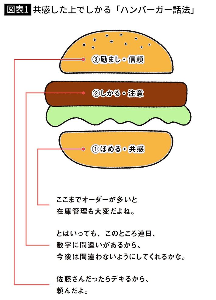 まずは部下の立場に共感し、最後にポジティブに背中を押す「ハンバーガー話法」(出所=『