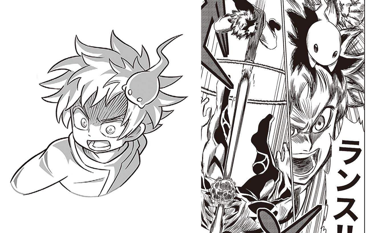 アニメ用に作られたキャラクターデザイン(左)と原作マンガ『残光のキビカ(高橋優也)』(右)。(大塚隆史、堀田孝之、フナヤマヤスアキ『