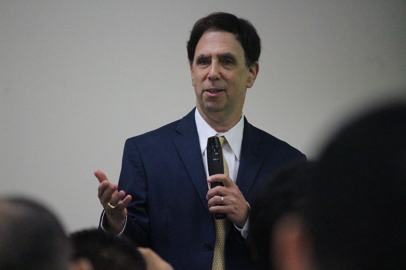 大阪大学で講演するフライシグ博士。
