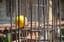W杯決勝が行われるルサイル・アイコニック・スタジアムの建設現場で働く作業員(2019年12月20日、カタール・ドーハ近郊)