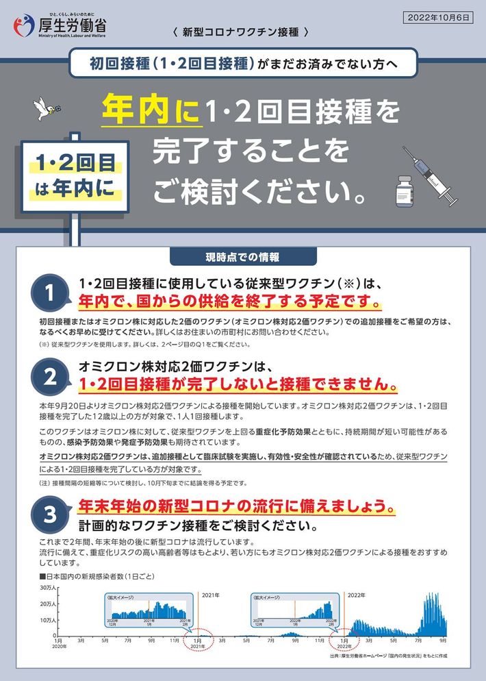 新型コロナワクチン 従来ワクチンの早期接種案内リーフレット