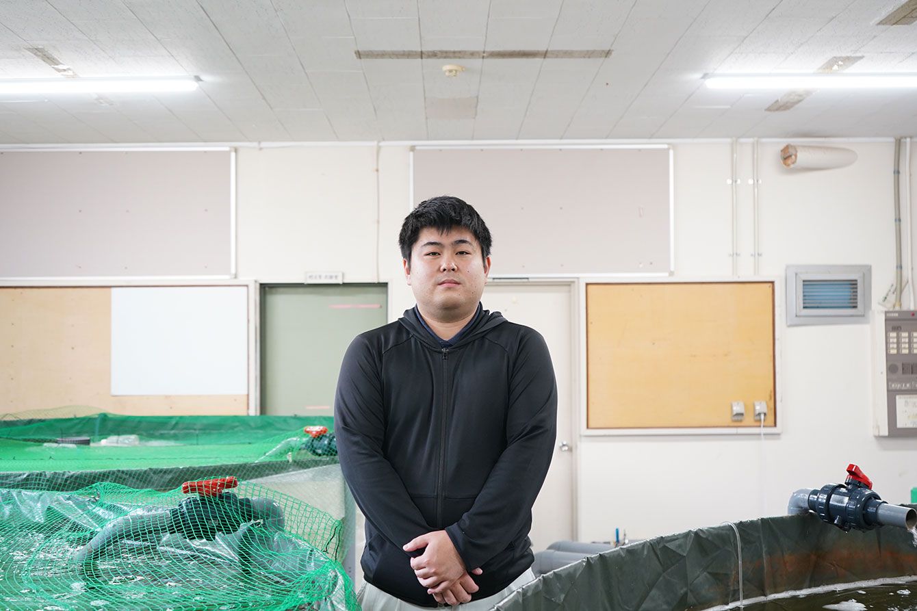 トラフグの初出荷までこぎつけた下西勇輝さん。