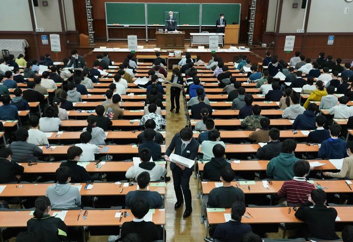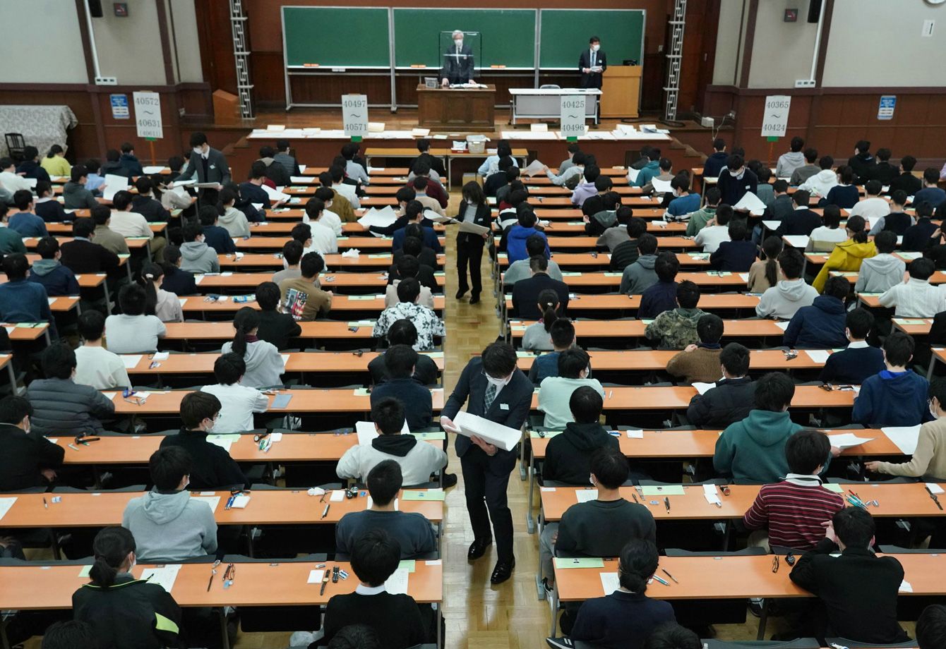国公立大2次試験の前期日程に臨む受験生=2022年2月25日、東京都文京区の東京大[代表撮影]