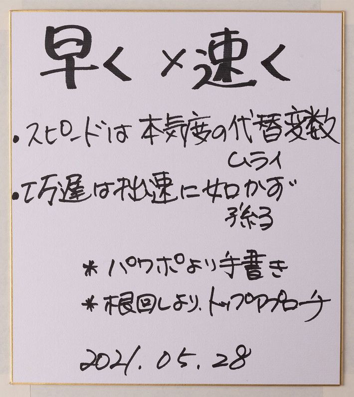 村井さんは毎週1回朝礼を開き、年間を通じて34節34枚の色紙を書いた