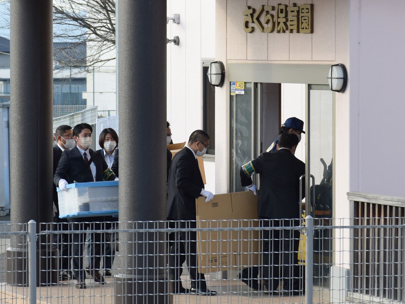 私立「さくら保育園」に家宅捜索に入る静岡県警の捜査員=2022年12月4日午前、静岡県裾野市