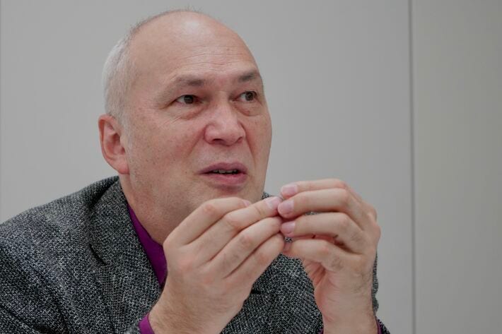 インタビューに応じるモーリー・ロバートソンさん