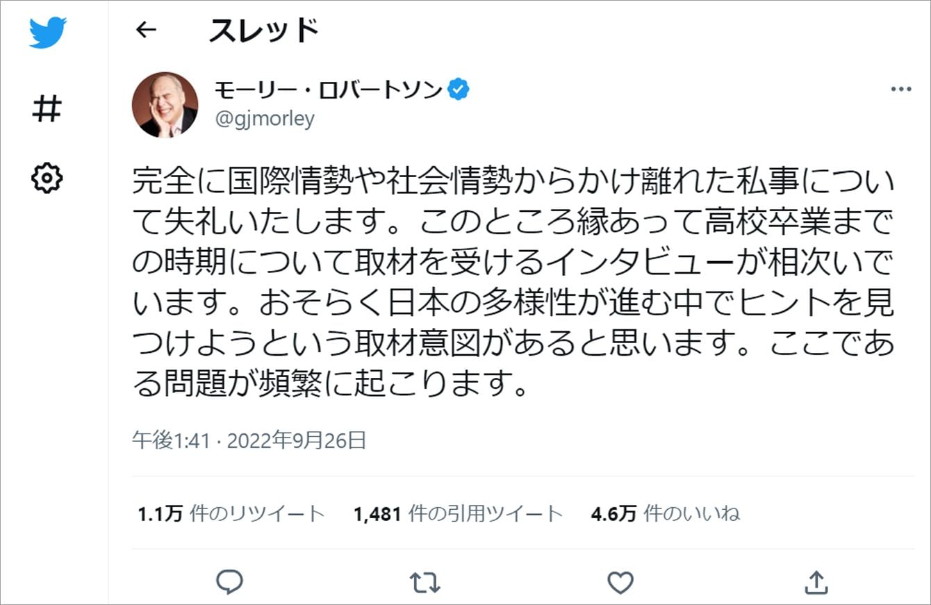 「僕はみんなが思うような成功事例ではない」モーリー・ロバートソンがツイート42連投で伝えたかったこと